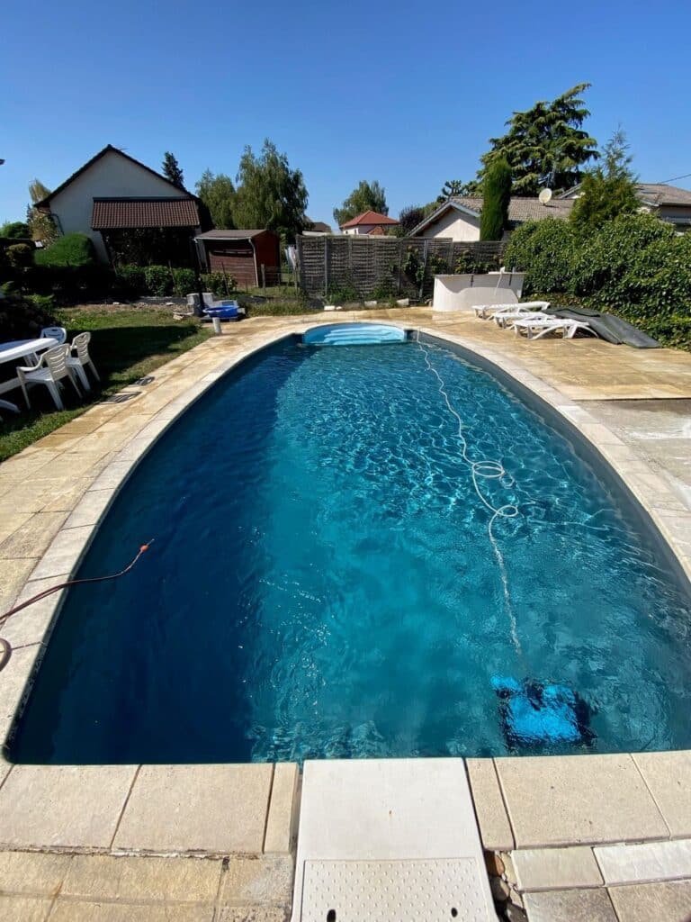 Remplacement du liner fait sur mesure, ajout d’une filtration sable + pompe + variateur de pompe.